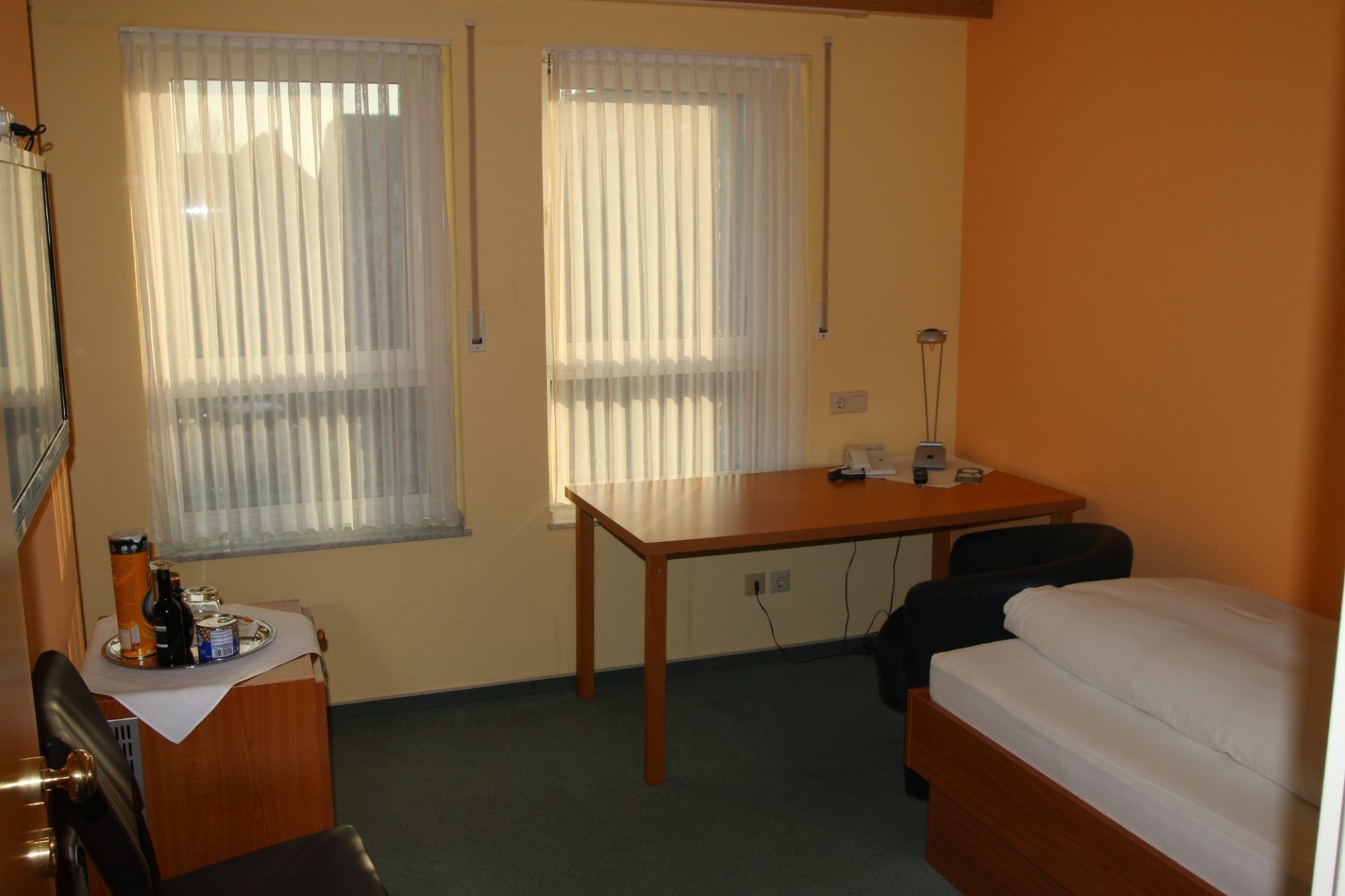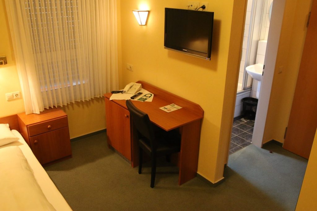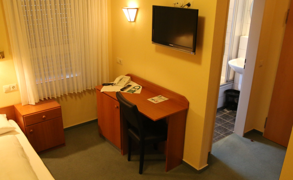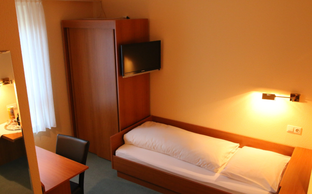 Unsere Einzelzimmer befinden sich in der ersten Etage. Diese Zimmer verfügen über einen Schreibtisch.