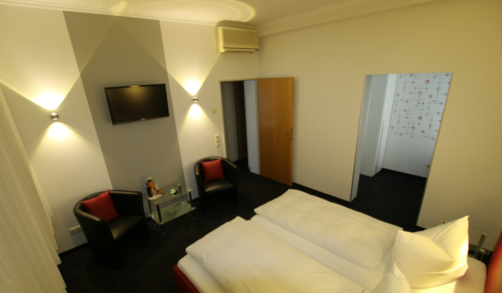 Alle Zimmer sind mit kostenfreiem WLAN, Flachbildfernsehern und eigenen Badezimmern ausgestattet. Sie haben Zugang zu unserem Frühstücksbuffet im Stammhaus, das täglich frisch zubereitet wird. Die Zimmerverteilung auf verschiedenen Etagen erreichen Sie über ein gepflegtes Treppenhaus.